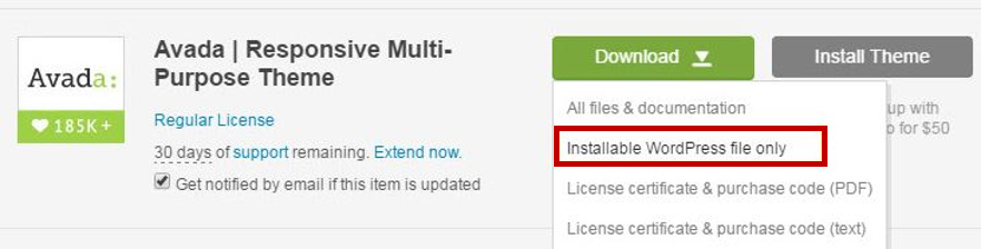 구입한 테마에서 [Installable WordPress file only]를 다운로드 합니다.