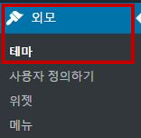 설치 파일을 다운로드 했다면, 워드프레스에 로그인하여 워드프레스 관리자 페이지에서 [외모 > 테마]로 이동합니다.