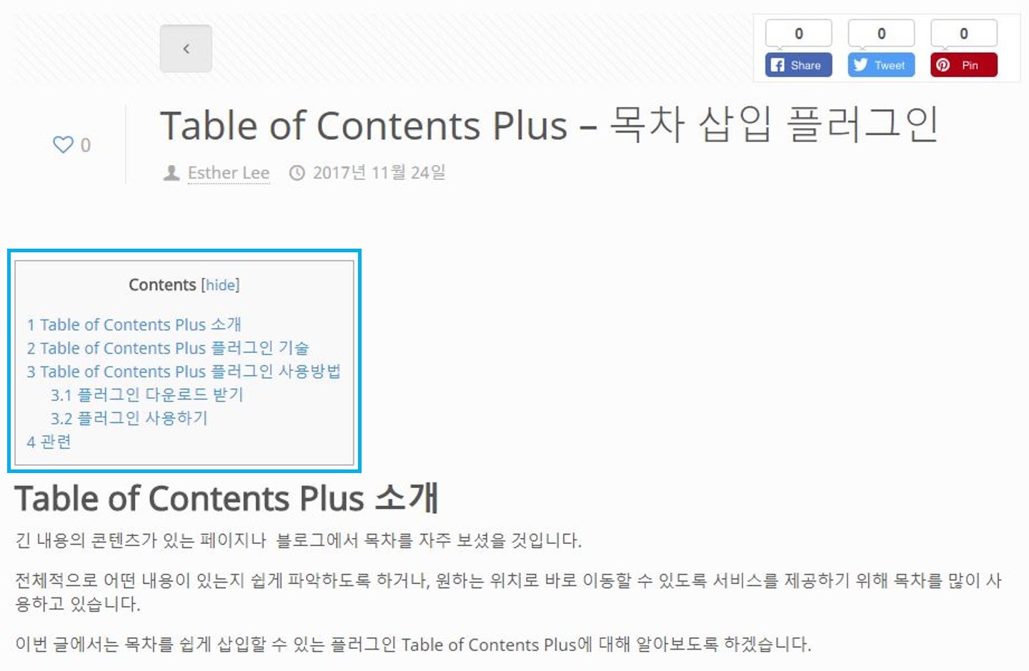 Table of Contents Plus 플러그인 기술